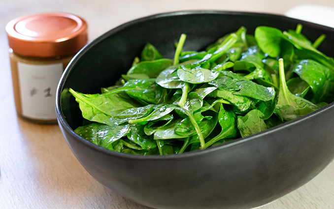 Unseren Signature Spinatsalat mit unserer Special Sauce Nr.1 können Sie als Vorspeise oder Beilage servieren.