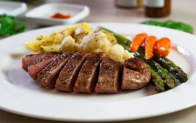Genießen Sie unser Set#1 für 4 Personen. Das Set besteht aus zwei knusprigen Entenbrustfilets und zwei, zarten, irischen Rumpsteaks vom Lamm. Dieses Fleischduett wird Ihnen auf der Zunge zergehen. Die perfekte Ergänzung zu den zwei Hauptkomponenten bilden Rosmarinkartoffeln, grünem Spargel, Möhren, Blumenkohl und unser Spinatsalat als Vorspeise.